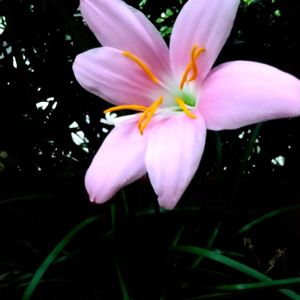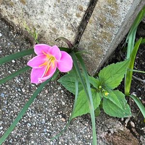 ご近所さんに分けて頂いたゼフィランサス・カリナタ咲きました😊🌸 昔育てていたのですが、いつの間にか見えなくなっていたので😅うれしいです🍒
