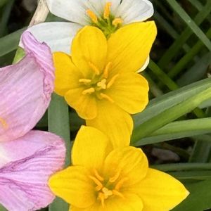 🩷🧡💛ゼフィランサス♪💛🧡🩷 この暑さの中、今年は咲かないのかも…と心配していましたが、仲良く3色咲揃いました✨✨✨🥰🎶 毎年、同じ鉢から様々な表情を魅せてくれます🤗 白い中に黄色一輪もいい感じ💛 みんな違ってみんないいですね😉 娘の誕生花と知り、尚更好きなお花になりました😉 花言葉 : 汚れなき愛 期待 便りがある 🏷️乙女色クラブ 🏷️ちっちゃいものクラブ に参加させてください