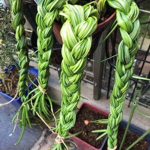 のびのびムスカリを三つ編み! 今年もやりました。 朝顔のツルで留めました。 水仙、クロッカスでもできますよ♪