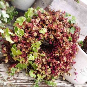 カリシアとアイビーのリース寄せ♥️ 夏はグレコマたっぷりのリースだったのにグレコマが枯れてしまって…😭 カリシアをたっぷり仕込みなおしました!