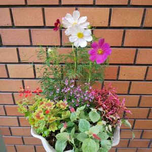 物凄〜くご無沙汰しております。 ちょいと入院生活しておったのです・・・ その間、夫に水やりお願いしていたんだけど やってくれてたのは素晴らしいがやり過ぎで 根腐れおこしてたものが多数。😢 夏越し出来てたラブラドリカとか ベラリーナ様もチ───(´-ω-`)───ン ヒューケラのハンギングバスケットもほぼ全滅。💀 まあ仕方がない。と諦め、出遅れたけど 秋冬の苗を物色しに早速お出掛け、寄せ植え🎶 しかしだ! 久々すぎてダメな組み合わせにしてしまったわ! このユーフォルビアは冬は室内じゃないかー。😱 寒くなったら解体せねば。((유∀유 でも傘咲きシクラメン可愛い˚✧₊⁎❝᷀ົཽ≀ˍ̮ ❝᷀ົཽ⁎⁺˳✧༚ こうきぅ苗から悩んだけど買ったよかった( ⁎ᵕᴗᵕ⁎ )💓 軽井沢育ちですって。(。 >艸<) 🍀ガーデンシクラメン ジックス 🍀小輪パンジーわらくストロベリー 🍀カルーナブルガリス 🍀カレックス 🍀ハクリュウ 🍀プリムローズジャスミンバリエガータ 🍀ユーフォルビア白雪姫(スノープリンセス)