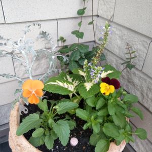 新しい寄せ植え🎵 お花の名前をメモするのを忘れて… 何だったかな(;^∀^) で、ちゃむさんが教えて下さいました✨ ありがとうございます(人´∀`)♪
