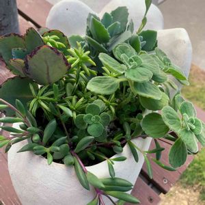 こちらも、acoさんのケーキ缶 パステル調の苗を整え、セダムを足して 寄せ直しました💕 リボンもリニューアル🎀