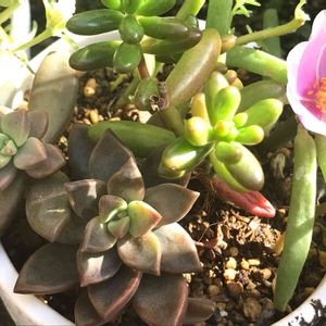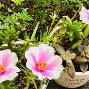 セダムをココットに置いて、 何日かしてピンとしてきたら、 ミニ静夜を寄せ植え♡ 底にはちゃんと穴をあけてある◡̈⃝︎⋆︎*