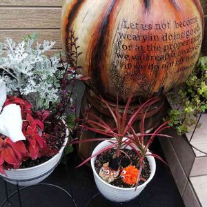 秋につくった寄せ植え🌿 コスモス揺れる 秋の散歩道をイメージしてみました🍂
