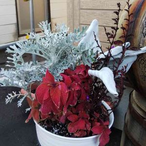 秋色の寄せ植えを新人園芸店員が作りました。 お義母さんへのプレゼント、喜んでくれるといいな。