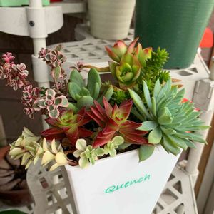 maiちゃんのリメ缶の寄せ植えこれでも十分可愛いんだけど手前のセダムをパープルヘイズにしたらもっと可愛いんだろうなぁーって思った! また後日気が向いたらぶっ刺ししてみよーっと♡ 今日はすごく寒いから多肉さんもいい感じに紅葉進むかなぁー(^^)
