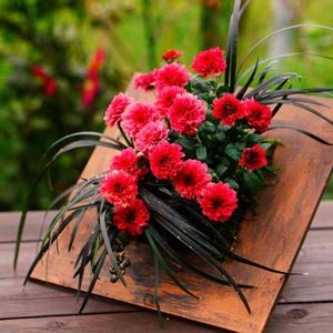 秋のお絵描き 器を思うがままにペイントしてガーデンマムとコクリュウを植え込んで~。 秋色をひょいと手にして好きな場所でお花見じゃ♪