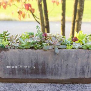 今日の成果 お気に入りの長方形のコンクリ鉢 多肉&セダム の寄せ植え🌿 どれも皆んな 自宅で増えたものだから なおかわいいね💕