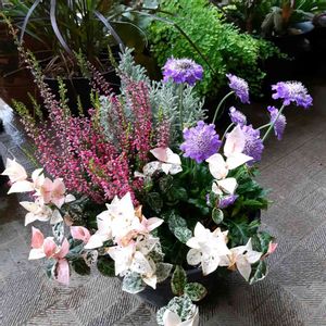 おはようございます♫ 今日は、朝から寝坊してしまい 娘は、テストの大事な日💦 5分で支度して、慌てて駅まで送りました🚗 娘も、専門学校2年生だから、 自分で起きなきゃって思ってるようで 私を責めません💦 ごめんね〜🙏 反省してます(⌯︎˃̶᷄ᗝ˂̶̥᷅⌯︎) 寄せ植えは、先日のたにくらぶさんの苗 「花月夜」「シルバースター」「淡雪」 peta petaさんのモルタルおうちの鉢に 植えました(*ฅ́˘ฅ̀*) 無事夏越しした、寄せ植えと 一緒に♡パチリ📸 ◡̈︎*♚︎‧*˚✩︎‧₊˚ ☸︎˳*✦︎∗︎˚೫˳♡︎˳೫˚∗︎✦︎*˳☸︎