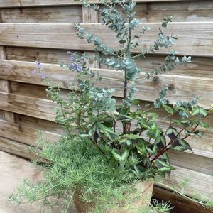寄せ植えのリメイク✨️ 去年5月末に作ったグリーン多めの寄せ植えを そのままにしておいたら ほぼ斑入りグレコマとワイヤープランツで モリモリに溢れてたのでだいぶん抜きました。 中にタイムとオレガノが ひ弱だけど生存していたのを発見して切り戻し 冬越しした挿し芽のブラキカムを 真ん中に植えておいたらそれぞれ育ってきました。 消えてしまったロータスコットンキャンディは たまたま見切り品で売られていたので 買い足しました😉✨