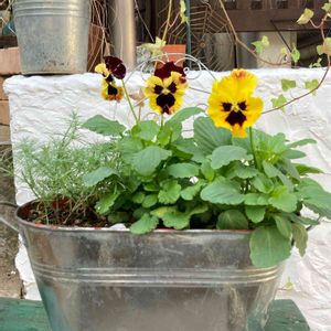 おはようございます😃 植えて一週間経ちました。 お花🌼が一つ増えて、元気です♪ 背景のボコボコした壁は、塗ってから 四日です🪜⚒🧱 グレーのブロック塀を、変えたくて 快晴だった土曜日に、 左官屋さんやりました。 何色に塗ろうか?迷ってます。 ビオラがもっと映える色に 塗装します🤎🤍💚