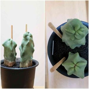 福禄寿さま月例定点観測😄 背が高い方に動きがっ⁉️ 先端の握りこぶしが開いてきた❗ (開かないけど😅) 元気で嬉しい😆🎵