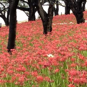 赤い曼珠沙華の中に、時々、白い曼珠沙華が咲いています。