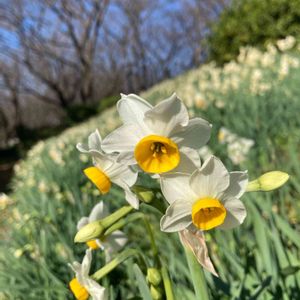 昨日、街中の水仙を投稿したのですが、幸手市権現堂堤の陽だまりで、一面咲いていました🎶😊 モンシロチョウも飛んで、ここは春?と言う感じでした☺️ 甘い香りが風に乗って✨ ここだけ水仙まつりの時と同じ位咲いていましたが、他の場所はまだまだでした。