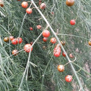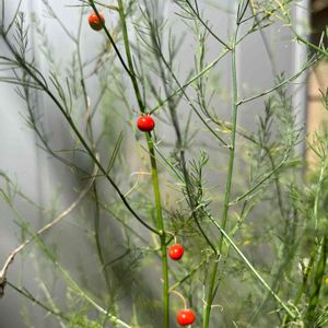 🔴🌿アスパラガス 🐯キット 実の中に種があり そのままにしておいても 来年また生えてくるそう🎵 繊細な葉で じつに柔らかな手ざわりでした 💓✨