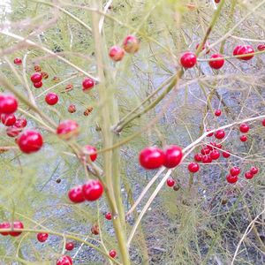 堺市都市緑化センター 12/15 アスパラガスの赤い果実 あおい実〜赤い実 沢山ついている 赤い果実が付くとは知らんかった💦 食べれるのかなぁ❓