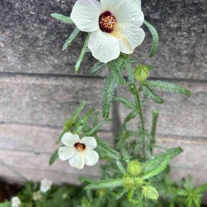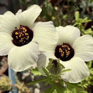 素敵な笑顔で咲いてます🤍 でも***昼過ぎには儚く萎んでしまいます ギンセンカ(銀銭花)/パンダ芙蓉 チョウロソウ(朝露草) そして ハイビスカス トリオナム*** 名前がたくさんあるけど とりあえず私は ギンセンカと言ってます 🏷️白い水曜日♡
