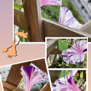 今朝の我が家のベランダ 「江戸風情」♡💟♡ トレリスからはみ出して…元気に୧(⁎˃◡˂⁎)୨ 今日は10輪は咲いている 💟♡💟♡💟♡💟♡💟 今朝はラジオ体操は主人の出勤と重なり行かれなかったので 機を逃さず…高い所なので上手く撮れないけれど… 取り敢えず (・д[◎]oパチリ 朝から…この梅雨時とは思えない猛暑で日が差して来るともう項垂れ⤵ 萎んでしまう💦 それでも植えてる場所も小さいのに蔓をどんどん伸ばし元気 💪✨ 負けてない💦 2枚目3枚目も同じく 4枚目…毎日咲いてくれてる「トリオナム」さん コチラも陽のある間だけ…花が開いて居ます♡ 今年も種採りしなくちゃね♡ 5枚目…以前 孫達に貰ったカラー♡確か…紫 アレから花は咲かないけれど…もう3年?4年目? 葉が🌿🌿とっても元気で それはそれで綺麗🌿🌿 この暑さに負けないで今日も水分補給💧して 頑張ります🛵🧘♡🛵