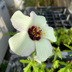 こんばんは☺️ 花友さんに頂いた種を蒔いて、咲いてくれたハイビスカス トリオヌム🌺 初めて育てました😊 普通のハイビスカスより小さくて、とっても可愛いです☺️🌸 発芽率もよくて、3粒蒔いて、3粒とも発芽して育ってくれてます😊 来年ようの種とりしないと😊