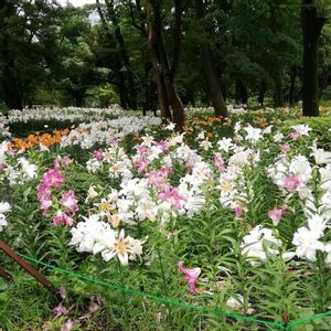 土曜日の午後、🍀 おきょうさんのpic見て🥰 私も日比谷公園に来ました。⛲ たくさんの百合の花に感激!💖 早咲きのものは、見られませんでしたが、ほぼ、満開です。 遅咲きのものはまだ、蕾です。🍀 もう少し、楽しめそうです。💐