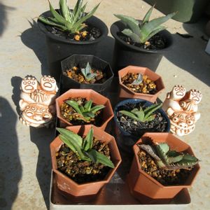 去年、忘師匠に教えてもらった水耕栽培👍 今年もはじめました👍 手前の6個 チタノタ 笹の雪黄覆輪 フランスアイボリー 屈原 のカキ仔たち 後ろの2つは 何年か前に忘師匠の プレゼント企画で頂いた アガベです😄 らしい姿になってきてます👍 お約束?のシーサーと😄