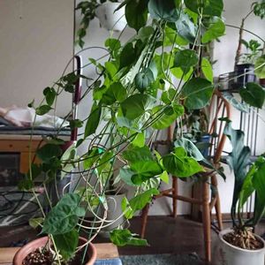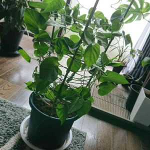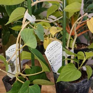 ツル植物の植え替えって本当大変‥‥💧 3~4m近いツルが4、5本絡まりあって、 全然ほどけない。 雑草取りする時の葛の弦ソックリ‥‥😅 何度もぶっちぎりたくなる衝動を必死にこらえ、ようやく植え替えた。 今回はガッチリ支柱も固定した。 しばらく植え替えしたくないわぁ‥‥‥