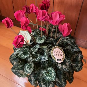 ジャジャ〰️〰️〰️ン😆 ♥️プレミアムシクラメン♥️ お買い得でした🤭 超❗️超お買い得品です‼️ なんと2980円が 700円だよ🤗 お花にそれほど興味の無い夫 だけど これは余りにも目につく大きさ🫢 しばらくは2階の踊り場に居てもらいます(絶対上がらない2階🤫)