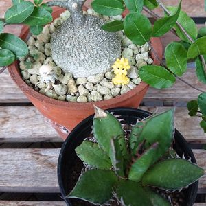 ■火星人とアガベ・ホリダ 火星人も10年選手。そのわりにはなかなか大きくなりません😔書籍や各種サイトの紹介では「5℃以上必要」みたいな記載がありますが、うちは野ざらし雨ざらしでこの通りお元気なので、ホントに丈夫な健康優良児。ネットの情報はあまりあてにならないですね。 ということで、他の塊根さんたちも、案外強い子たちがいるんじゃないかと屋外越冬チャレンジしてみよう😎 アガベ沼に近づかない決意は変わってないんですが、近所のHCで安かったので、ついホリダってしまいました。 ひ、1つくらいならいいよね、きっと。もう増えません😼