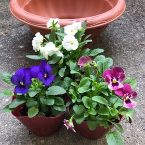 ブルーのビオラにずっと 出会えず 昨年は9月の末からたくさん 出てたのに😞 その年によって流行りがあるのかな? それで、今回は薄いブルー 持って帰ってきたら 可愛いおまけ付きでした💕 後、白ビオラだけの鉢も作りたくなり購入しました😆 お財布に優しい子たちです 大切に育てます🥰 後は種まきビオラちゃん育ててるのでお迎えはもうないと思います 本当に? もう1人の自分が問いかけてくるぅ 😆😆😂
