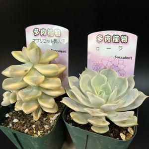 左 グラプトペタラム ティテュバンス錦 (アプリコット錦) 右 エケベリア "ローラ" 普通のスーパーで見切り品100円になっていた子達を飼いました。 残りものの割に元気だし、綺麗だし、安いし。 でもスーパーの陽は当たらない冷房効いた場所からうちの蒸し暑い場所に連れてきて、いきなり弱る事もあるからなぁ。 しばらくは室内の育成灯下で調整します。