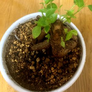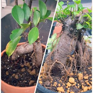 🌲ガジュマル🌳 幹の部分を埋めると太くなる、と聞いて2年間埋めてました! あんまり変わらないかな?と思ったけど、比べたら太くなってくれてた☺️