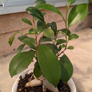 ダイソー出身のガジュマルです🪴 年中ベランダ栽培してます! 幹を埋めたら太くなるとの事で、埋めて育てていて 鉢が小さくなったので植え替えると、凄く大きく なりました😆100円とは思えない大きさです! 幹を埋めて葉っぱだけなので何だかサカキみたいです笑 次の植え替え時はそろそろ幹を掘り起こして、出して 植えようと思います😄