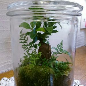 テラリウム🌱 盆栽教室で変わり種に挑戦しました❗ 暑い夏の夜は涼しげで良いですね🎵 蓋は開けない水やりも無し!こんな楽で良いの?
