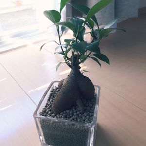 ヤフオクで、沖縄の出品者さんから購入した、実生ガジュマルです。 まだ肌寒い時期に小さな苗が届いて、ずっと成長してくれなかったんですが、6月末くらいからどんどん大きくなってきました💕 まだまた幼児レベルですが、私には見える気がします、小ちゃなキジムナーの姿が✨