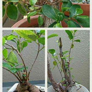 ガジュマルは生命力が凄いから定期的に剪定って知らず 凄いことになった子(右下) 室内で葉が落ち枯れ木みたくなってしまった子(左下) この子達を先月末ににガッツリ剪定初挑戦‼️ 〈beforeのpickありません〉 一週間程で新芽もたくさん出てきました‼️ ガジュマルの生命力を実感 一安心(*´∀`)ホッ もう1つのガジュマル(上)みたいにモサモサになってね✨
