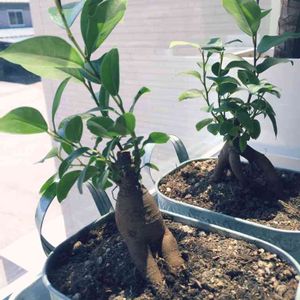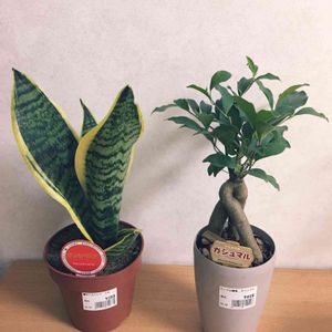 主人が植えたの第2弾(*^^*) うちにガジュマルさんが元々いますが、昨日新たに小さいガジュマルを2つお迎えしました。 主人曰くガジュマルズだそうですσ^_^;