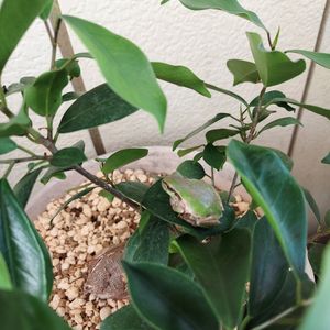 ガジュルマルブラザーズ弟君です。 この子も鉢増しをしてあげたい。去年の秋からずっと不調でした。春になって調子を戻しましたが最近少し不調です。😭 今日夕方水やりしていたら、アオガエル君を見つけましたが、調子に乗って水をジャブジャブ掛けていたらどっかに行ってしまいました。😭🐸ごめんよ~。 でもたっぷり水撒いたから涼しくなったでしょう~、干からびているのかと心配していました。