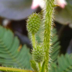 オジギソウのつぼみです。ピンク色の花が咲くんですね。見てみたいですね。