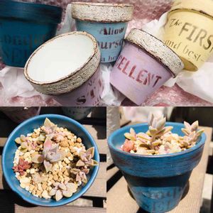 ついに…ついに手を出してしまった…!!!初のリメ鉢作り!!!ヒマすぎぃ!笑 picで見たらかわいく出来てる…!(自画自賛) そう…忘れてた…!昔は図工が好きだったことを!!!楽しかったからまた作ろう♡♡