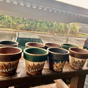 今日の狩りは不発😑 ダイソーではみたことない キミドリ色のトレーに子宝草だけが 残ってた。何が入荷してたの💦 南海園さんでは、80円で購入した 七福神さんが240円の札😳 得しちゃったのかなー😅 リメ鉢に寄せ植えしようと思ったけど 何もうかばないので、とにかく詰め込み。 無心で✂️しては挿し✂️しては挿し。 一年たってないけどものすごい根張り😑 ツルマンネングサも新旧交代で チマチマしました。またロン毛に なるよね🤣 同じようなリメ鉢。まだ懲りてない🤣