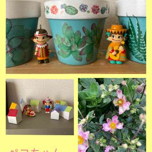 ペコちゃん祭りに ねこ様から頂いたペコちゃんで 参加させて下さいね😋 秋明菊なんかチリチリ😅