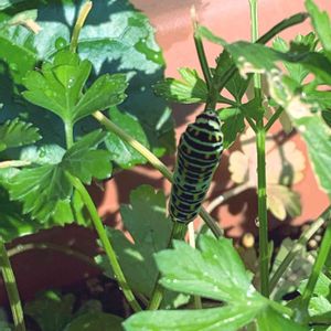 イタリアンパセリに緑のモスラさん見っけ!小さい赤ちゃんも2匹いた!🚥黄色!