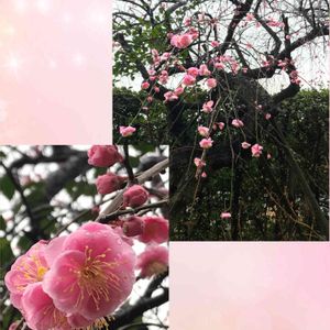 近所の遊歩道にて。 枝垂れ梅がキレイに咲いてました☺️