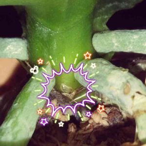 ~次々と~ カップ底から根が出て自立不可なマイクロ胡蝶蘭(白)の勢いが素敵🌹 花7+1 花芽+5??