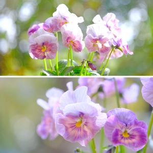 今日の撮影です。 行きつけのカフェで花苗を販売しています。 茎がすっくと立った姿がとても凛々しいです。 ビオラとパンジーは明確に区別することができませんが、やや小さめなのでビオラとしています。