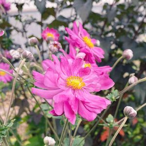八重咲き 秋明菊🌸☘️ 気温が下がり ヒンヤリとした空気の中 八重咲きの秋明菊が冴えたピンク色 になり咲いています 蕾が頑張るぞ〜٩(˙▿︎˙)۶って してるみたいね💕 年々株が増えてきました 秋の花壇を賑やかに 彩ってくれています💓