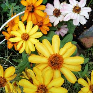満開の “ジニア・プロフュージョン”🌼 梅雨にも、長雨にも、暑~い夏にも強い💪 そんな、世話いらずで、頼もしいあなたが大好きです💓♥️❤️ 一年草なのが、( ´△`)😢