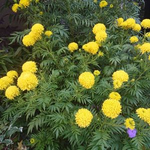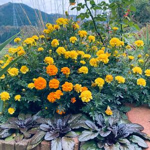 黄色とオレンジ色のマリーゴールドが綺麗に咲いていました。