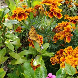 11月… マリーゴールドが元気に咲いてます😁✌️ 隣に、鑑賞用トウガラシを植えてありますが… 人目につく事もなく中に埋れてます🌶💦 植える場所は重要ですね😅